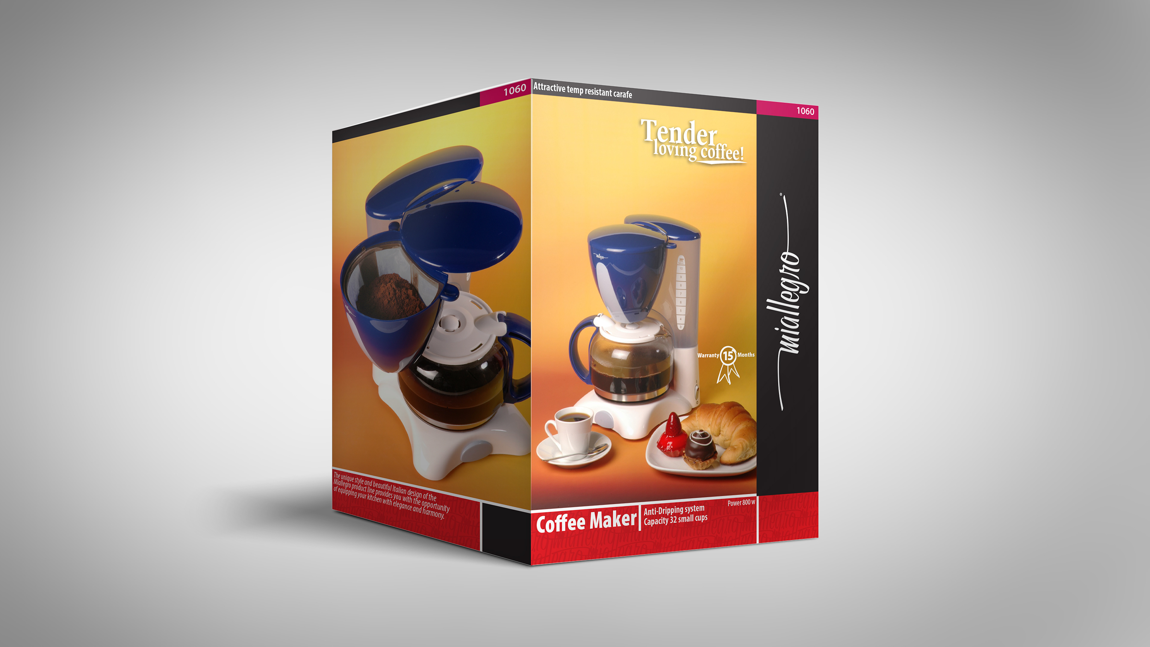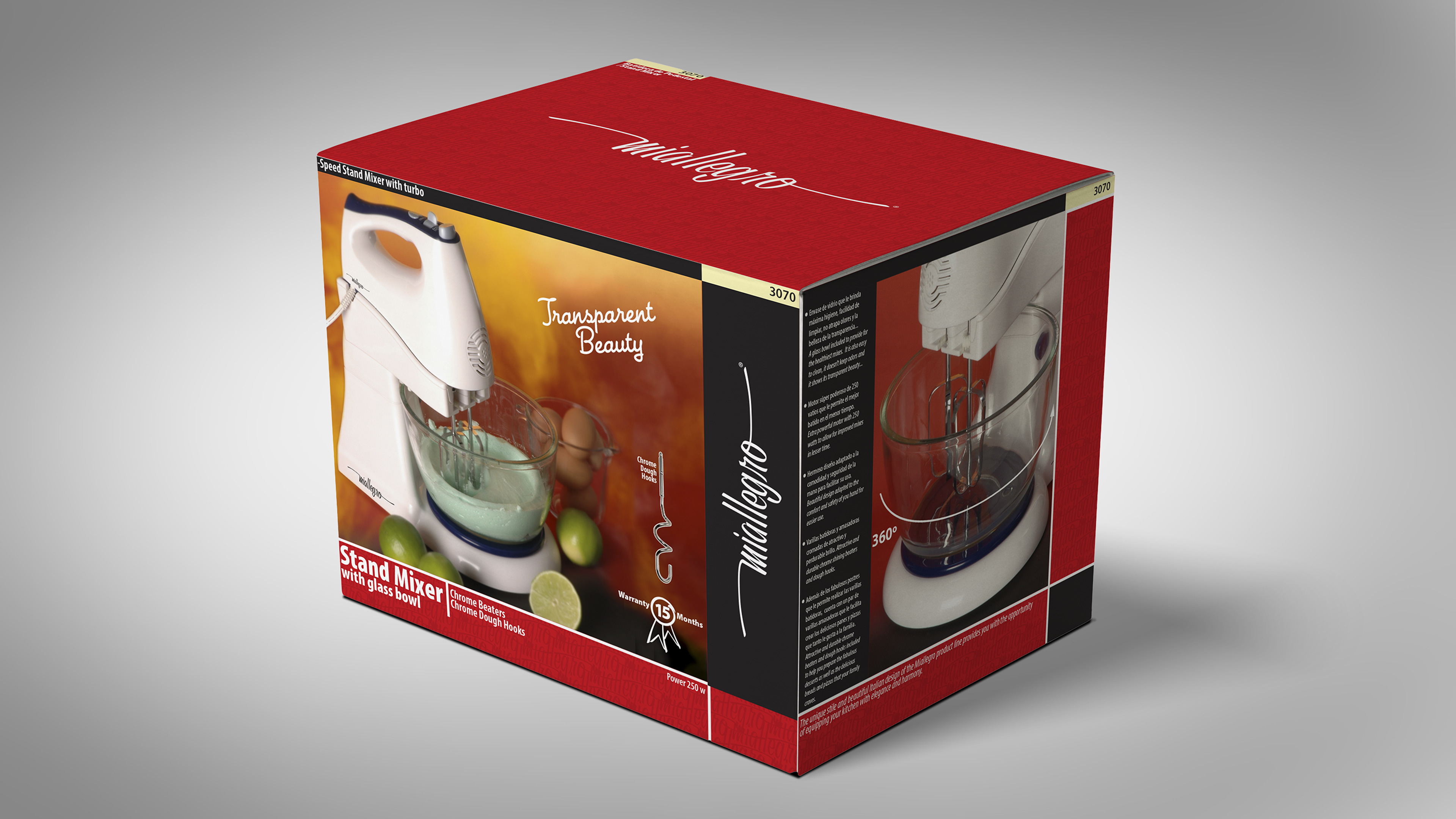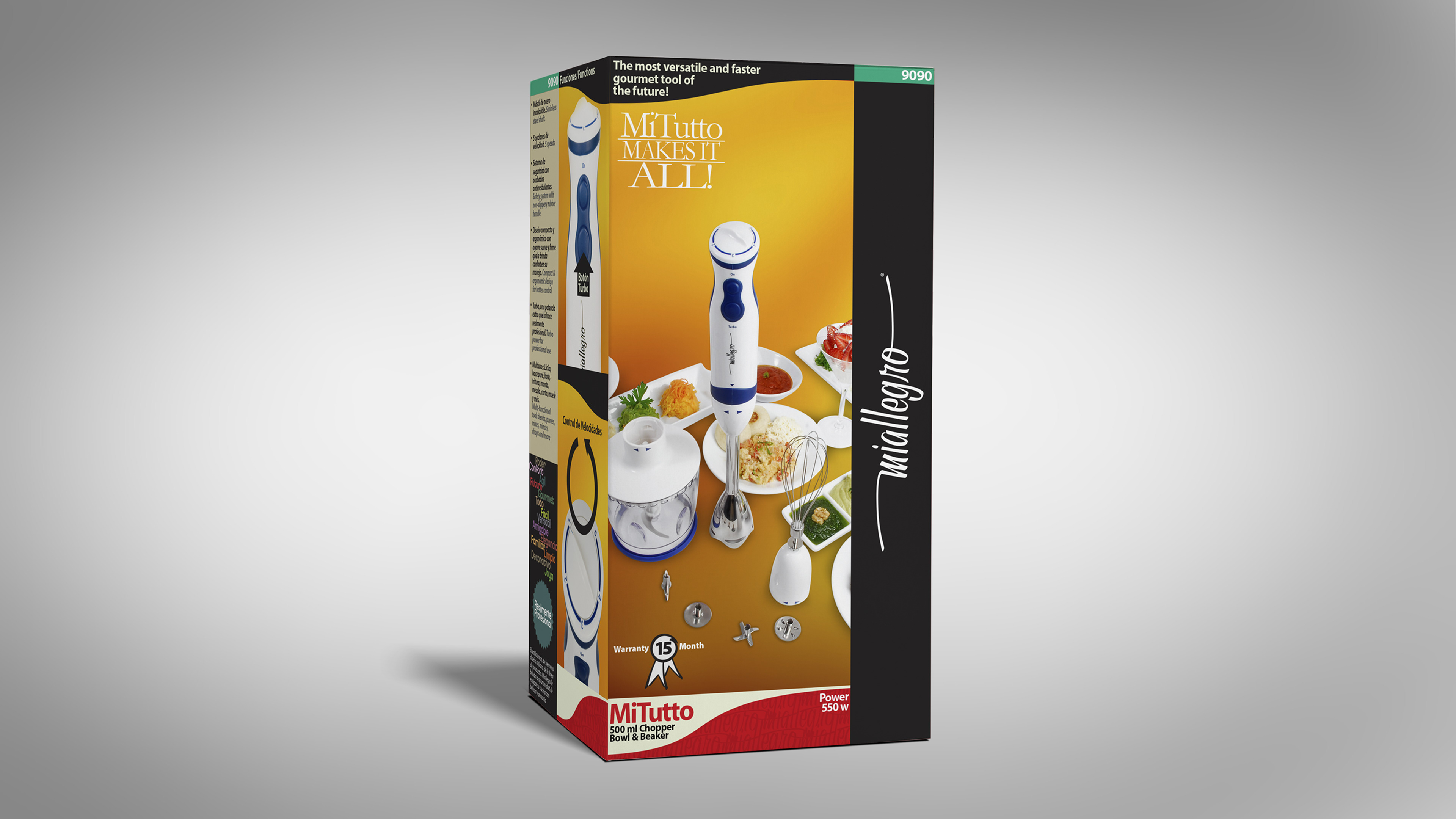 Diseño de Branding, namming, manuales de usuario, empaques y fotografía de productos para Miallegro Una marca de electrómesticos. Barquisimeto, Venezuela. 2004.